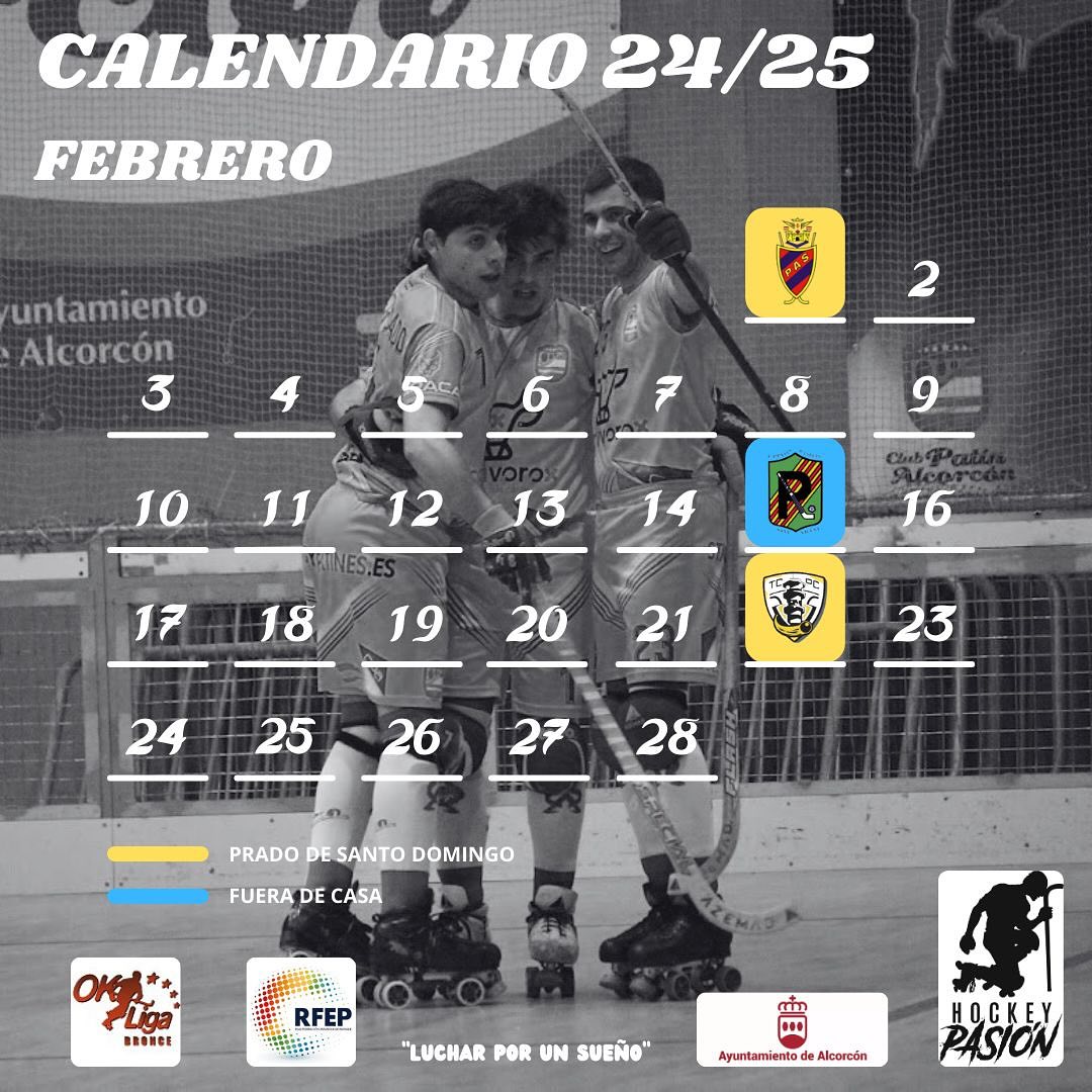 Calendario Febrero 01/02/2025 Os compartimos el calendario de OK Liga Bronce del mes de Febrero para que te organices el mes.Te esperamos en la Pista cubierta de Hockey Patines del Polideportivo Prado de Santo DomingoNo faltes!!!!!