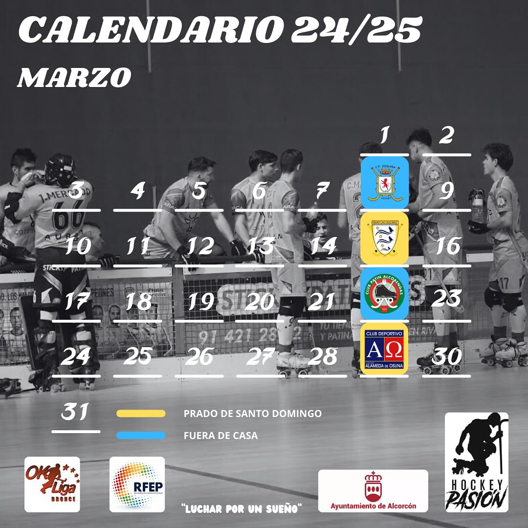 Calendario OK Liga Bronce Marzo 03/03/2025 Os compartimos el calendario de OK Liga Bronce del mes de Febrero para que te organices el mes.Te esperamos en la Pista cubierta de Hockey Patines del Polideportivo Prado de Santo DomingoNo faltes!!!!!