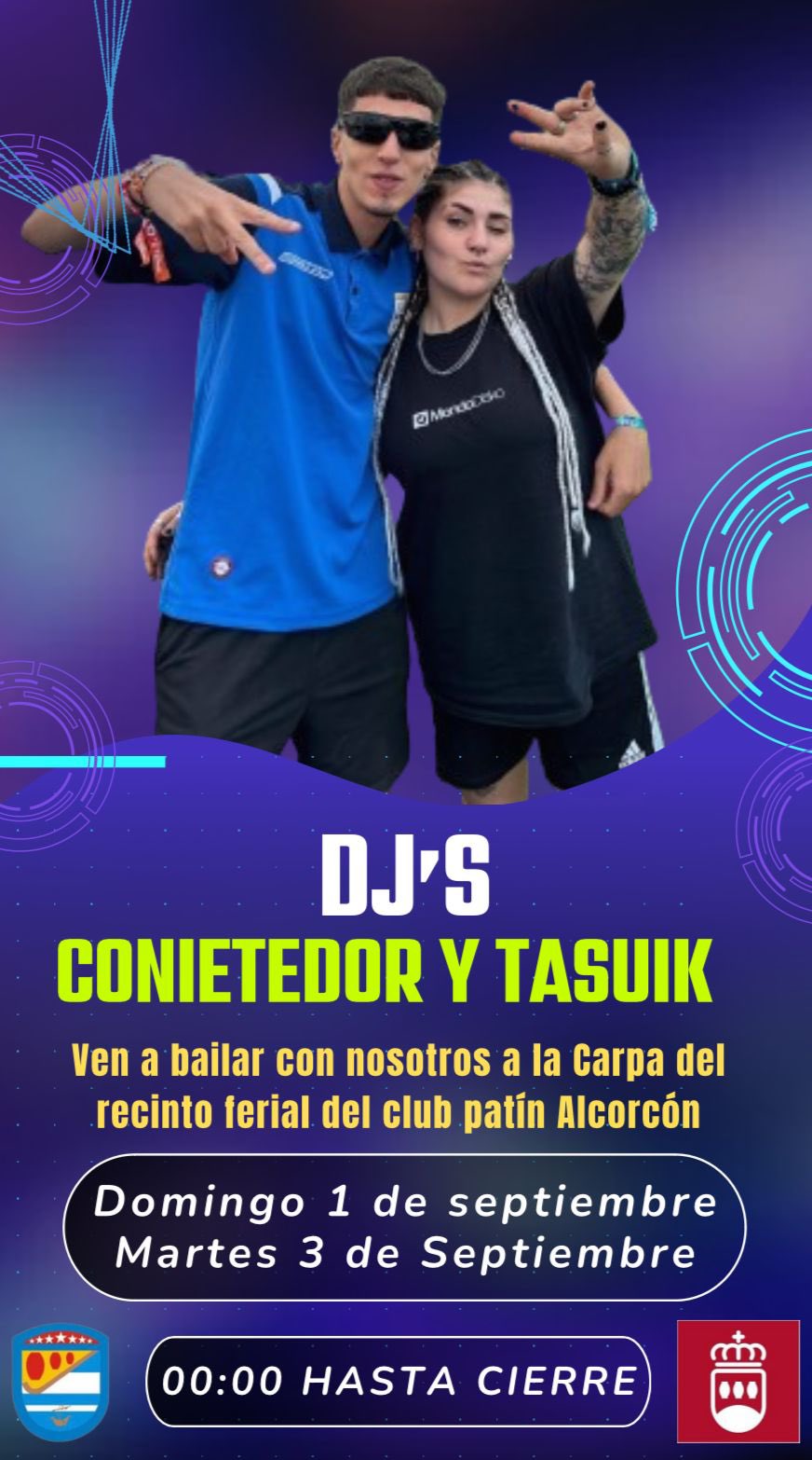 Domingo 1 de septiembre y martes 3 septiembre apertura 18,30h y a las 00,00h los Cañeros DJ,S CONIETEDOR Y TASUIK os harán disfrutar hasta el cierre.
