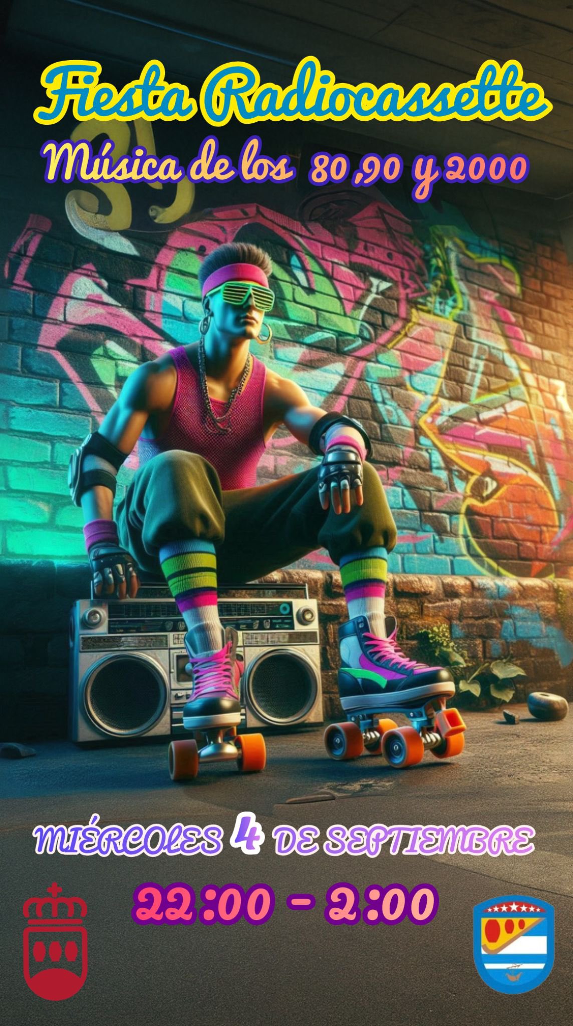 Miércoles 4 septiembre apertura 18,30h y a las 22,00h aprox vente a disfrutar y bailar de la música de los 80,90 y 2000 en nuestra GRAN FIESTA RADIOCASSETTE, VEN DISFRAZADO Y PASALO DEBUTIIIII.