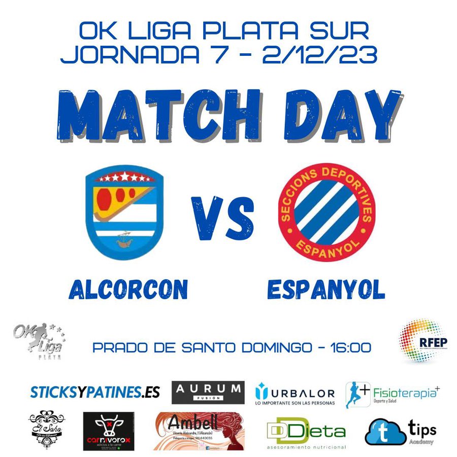 OK Liga Plata 01/12/2023 Este sábado partida de Ok liga Plata entre el CP. Alcorcón y el Espanyol, no faltes te necesitamos!!!Sábado a las 16:00 en la Pista Cubierta de Hockey Patines del Polideportivo Prado Santo DomingoTE ESPERAMOS!!!
